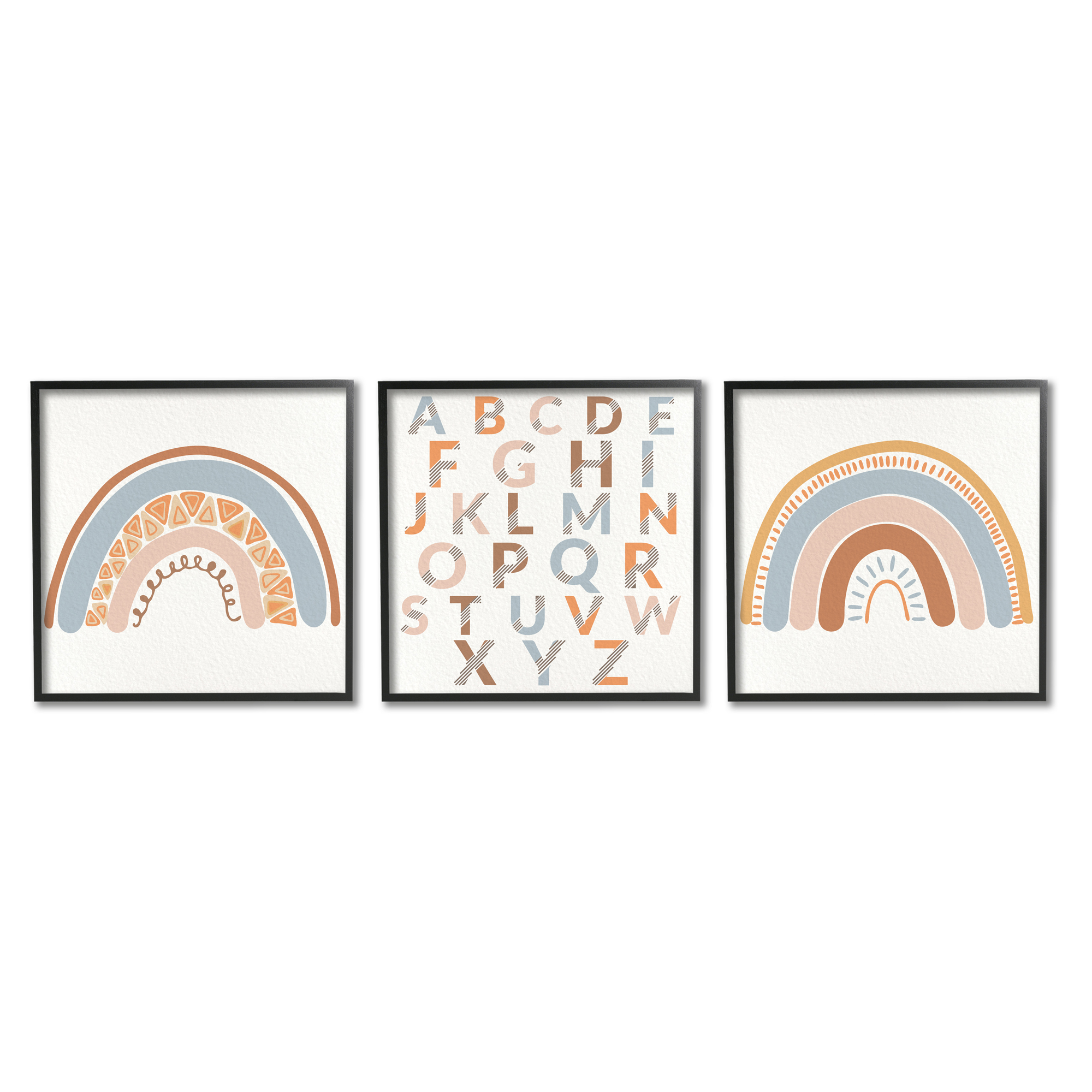 Stupell Indtries Geometric Rainbow Playful Alphabet Chart Brown Blue 12 X 12 Design By Kim Allen Walmart Com